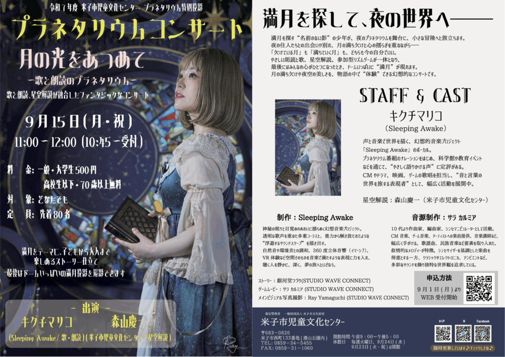 鳥取県・米子市児童文化センター プラネタリウムで開催される特別投影イベント「月の光をあつめて~歌と朗読のプラネタリウム~」向けのコンサート制作を担当いたしました。